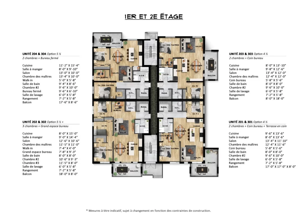 c | 202 – 302 | 5 ½ + | 3 Chambres | Grand espace bureau | Terrasse d’environ 145 pi² | Unité 302 | |