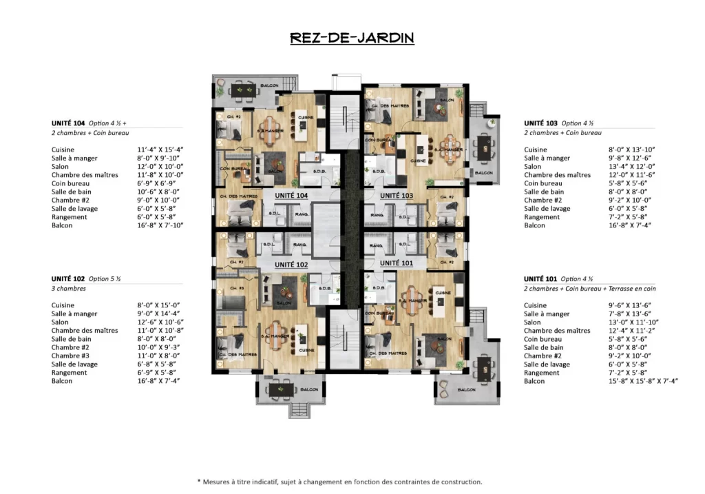 e | 104 | 4 ½ | 2 Chambres | Coin bureau | Terrasse d’environ 130 pi² | ||